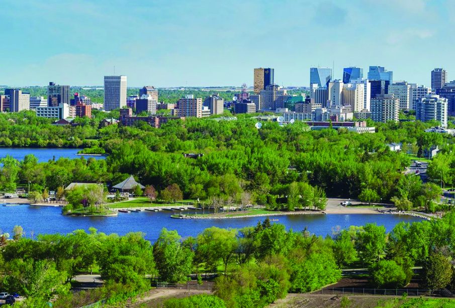 Regina’s skyline and Wascana lake in summer. wikipedia commons