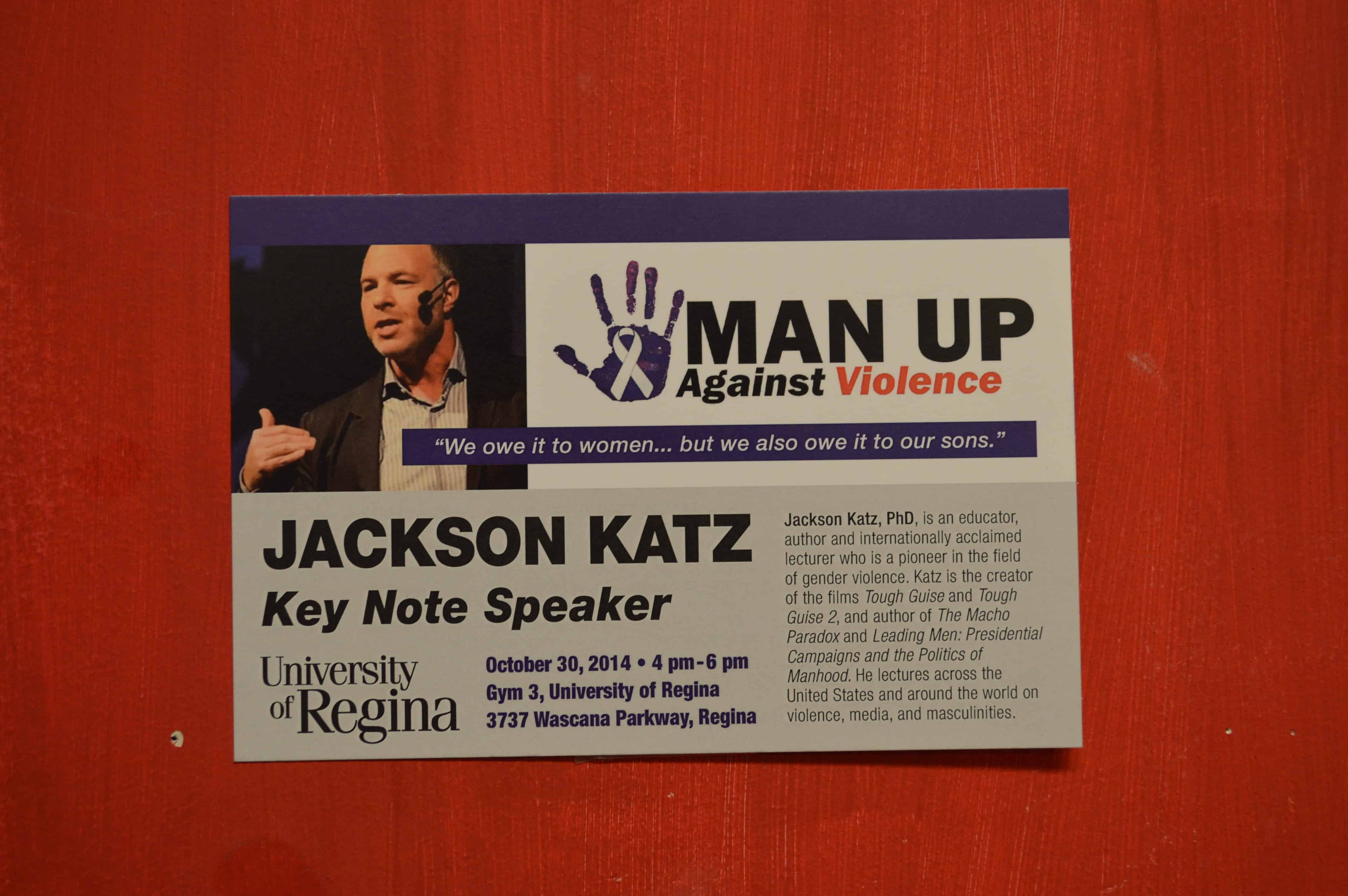 Katz was invited to give a presentation on the issue of violence against women on Oct. 30, held at gymnasium 3. Emcee Addison first welcomed dean of the faculty of kinesiology and health studies, Harold River, to welcome guests on behalf of the U of R. River expressed his outlook on the Man Up campaign by stating, “This is only the beginning. It gives me great hope for the future.”