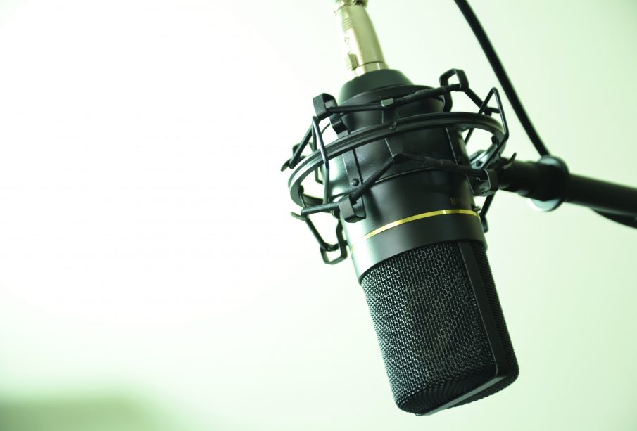A black studio microphone on a white background. Pixabay
